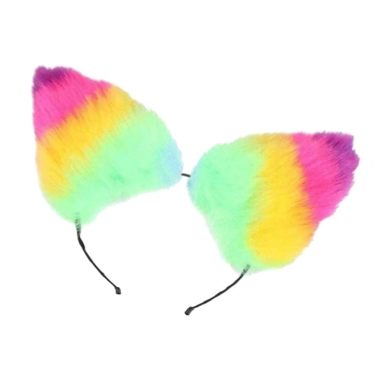 This cat ears accessory is made from a sturdy metal rust-resistant frame with cushions on the ends to provide comfort whilst wearing. The ears are formed with high quality, soft, and plush faux fur. It is rainbow-colored because why not?