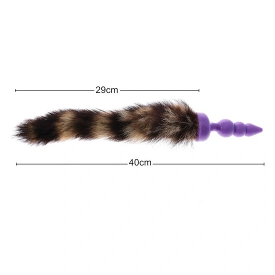 This silicone tail plug features a purple plug with a raccoon tail. The purple plug has three beads which provide a bumpy and sensational experience. Meanwhile, the tail completely mimics raccoon patterns which make your transformation even more seductively convincing. Get ready as you are about to become a nasty sexy raccoon!