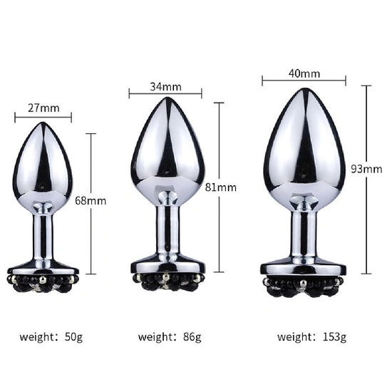 Crafted from metal base material, each piece is flawless and free from any nicks or imperfections that could irritate the walls of your rectum. It holds a classic teardrop shape, but its uniqueness lies in its jewels, which are perfectly arranged to accentuate your rear.